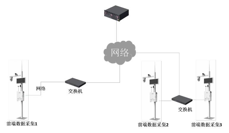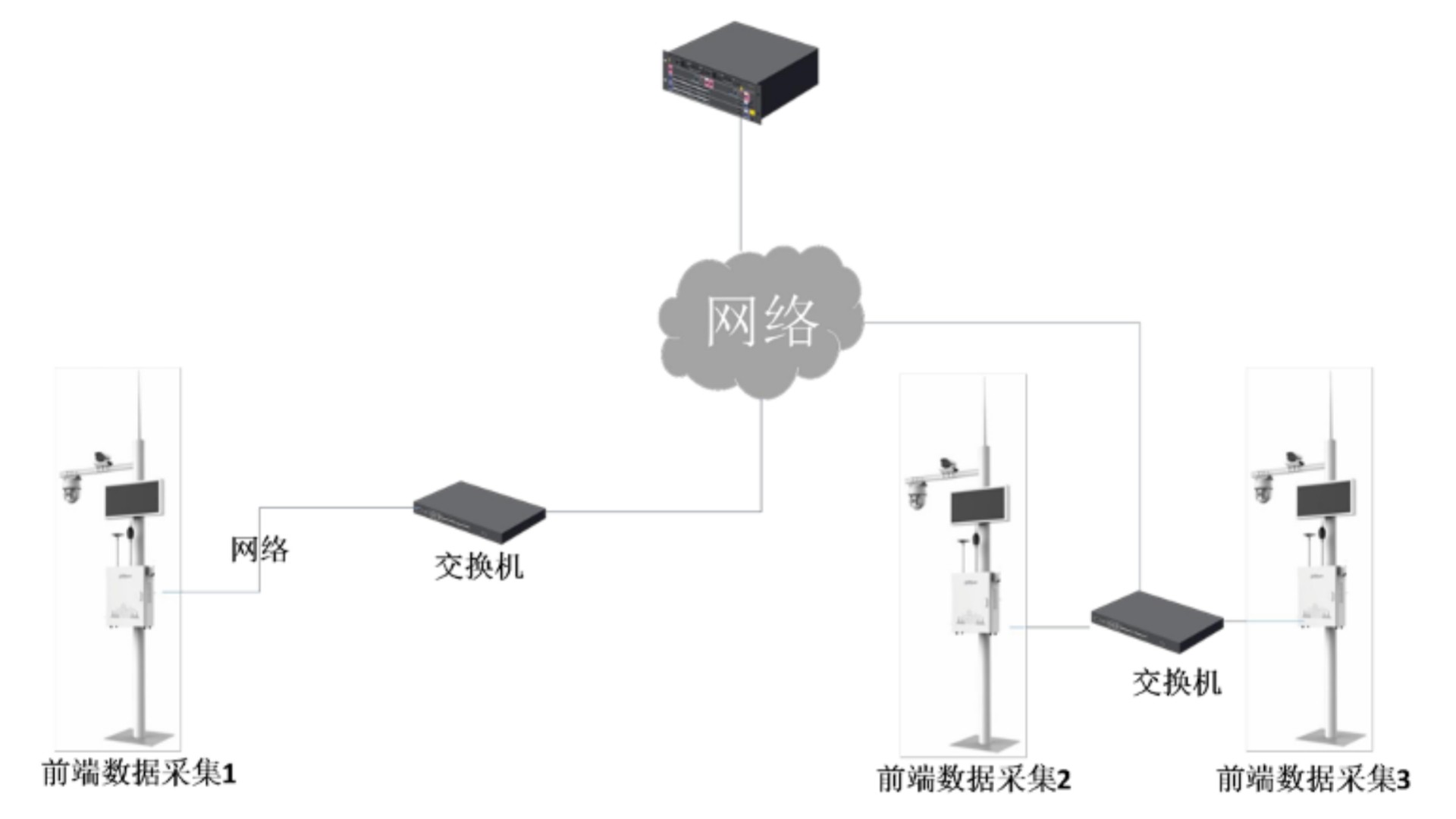 数据采集:主要由各类环保检测传感器、摄像机、动环主机、显示屏、支架组成,可选择一体化集成设备,也可以根据现场实际需求灵活配置。本次园区建设采用了户外环保检测一体机,最大程度的满足了前端设备集成化的要求。
