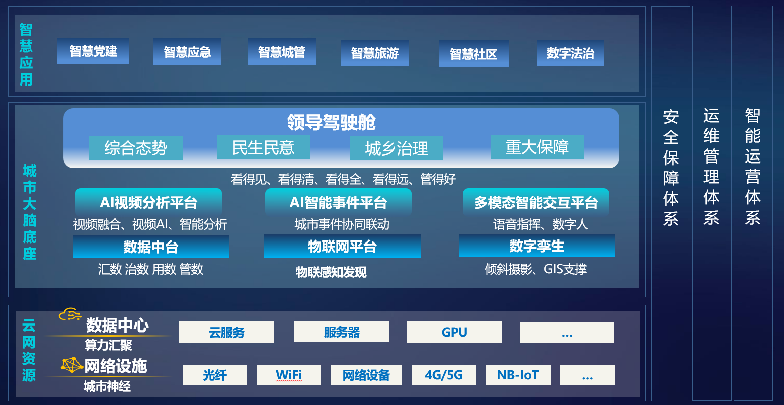 城市基础设施包括数据中心及网络设施建设、城市运营指挥中心大厅建设、智慧灯杆、智慧井盖等物联设备。
